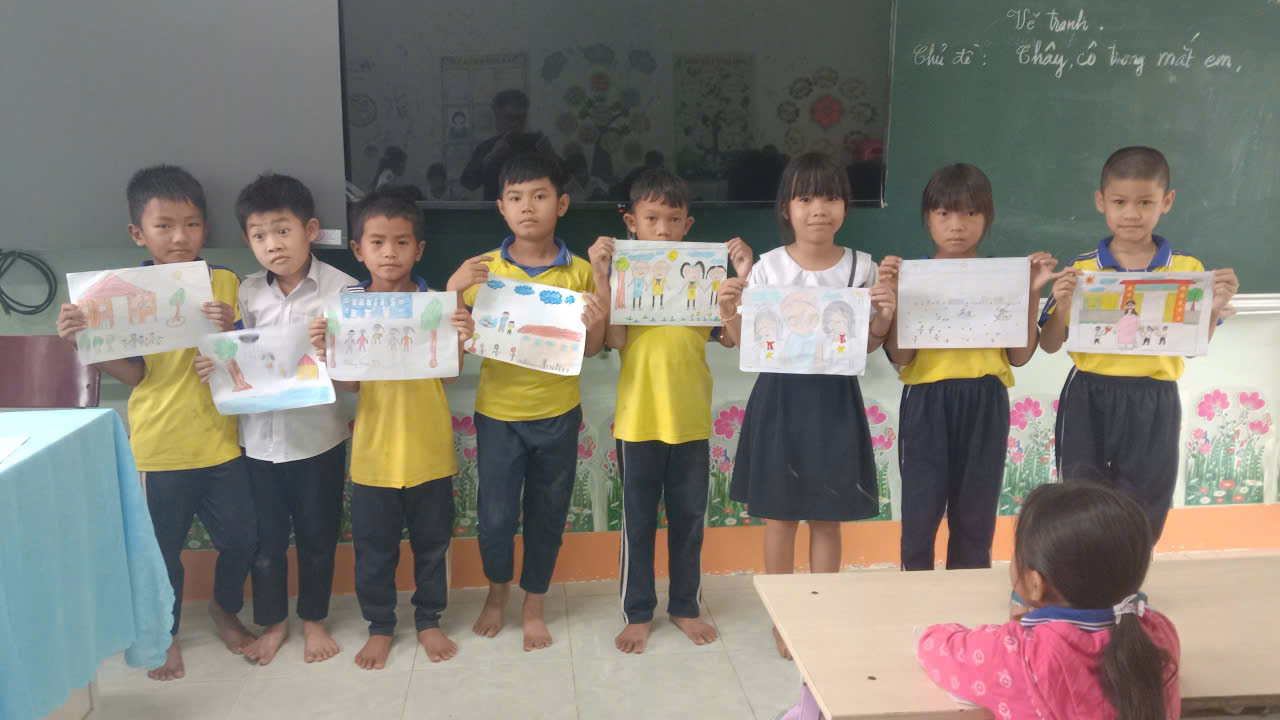 Thông qua hoạt động, các em học sinh được thỏa sức sáng tạo, gửi gắm tình cảm yêu thương và lòng biết ơn đến thầy cô bằng những bức tranh đầy màu sắc và cảm xúc.