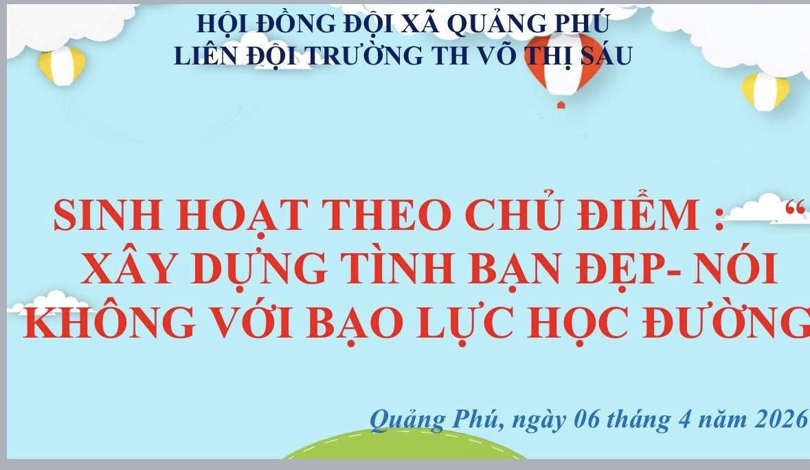 Nhằm giáo dục học sinh về kỹ năng sống, xây dựng môi trường học đường an toàn, lành mạnh, Liên đội Trường Tiểu học Võ Thị Sáu đã tổ chức buổi sinh hoạt với chủ đề: **“Xây dựng tình bạn đẹp – Nói không với bạo lực học đường”**.